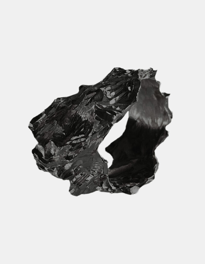 Bransoletki Galaxy, ręcznie rzeźbiony pierścionek Rock oraz kolczyki Trig wykonane ze srebra próby 925 i pokryte rutenem.
