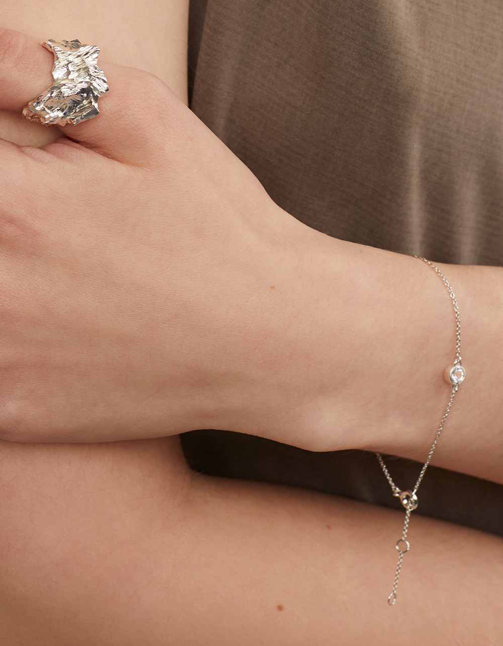 Bransoletka Catch z trzema białymi topazami wykonana ze srebra próby 925, pokryte biodegradowalną powłoką zabezpieczającą przed utlenieniem.