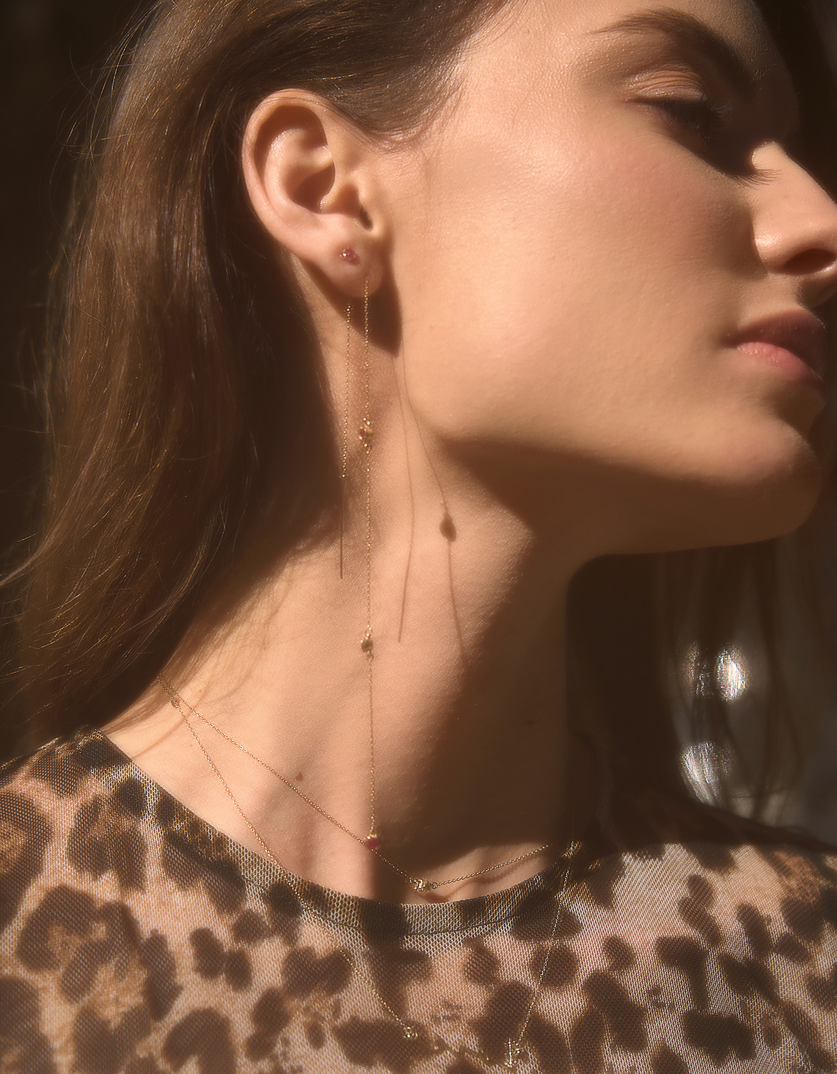 Jeden kolczyk catch z 3 rubinami, 14K żółte złoto