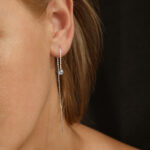 Jeden kolczyk Spark z białym Topazem wykonany ze srebra próby 925, pokryte biodegradowalną powłoką zabezpieczającą przed utlenieniem.