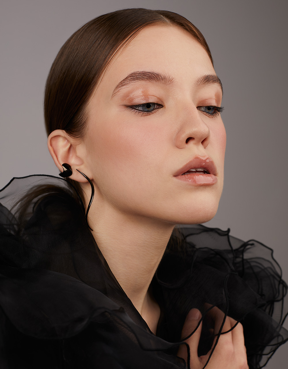 Nausznica Galaxy, wykonana ze srebra próby 925 i pokryte rutenem.