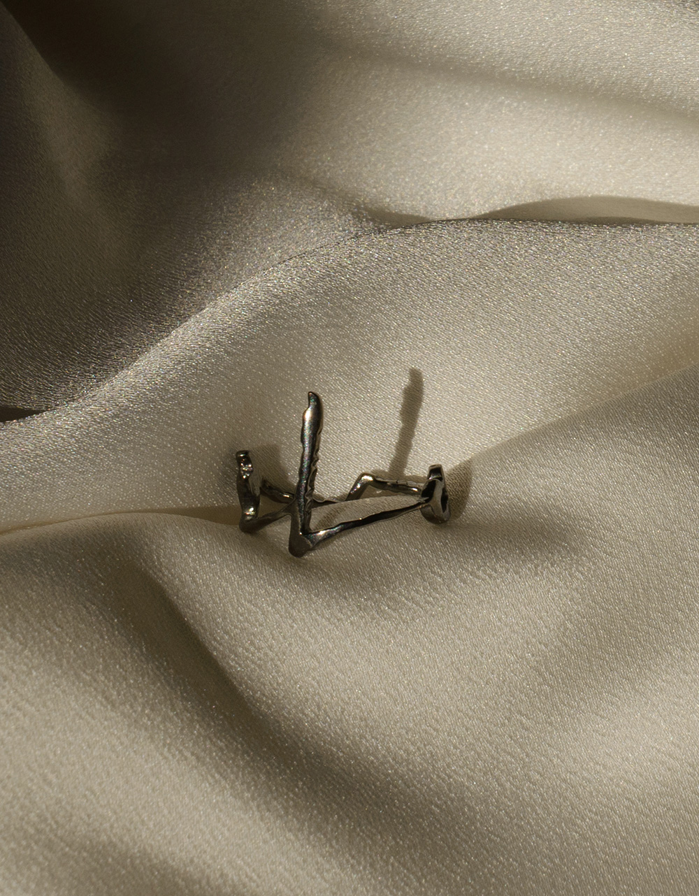Pierścionek Love wykonany ze srebra próby 925, pokryty rutenem.